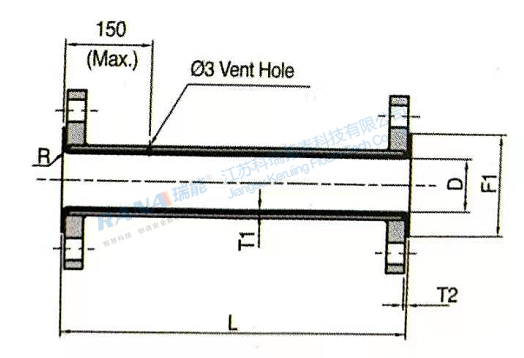 Size | L(Max.) | L(Min.) | D | F1(Min.) | T1(Min.) | T2(Min.) | Ring Plate/Flange | Weight (kg) | ||