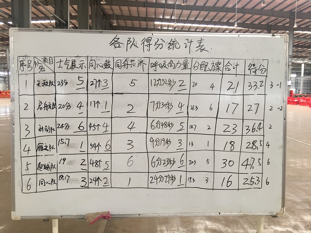 活動開始前,通過短暫的熱身活動,打破了員工之間的隔閡,營造了團隊氛圍。接下來,在總教練的指導下,全體員工分為六組在士氣展示、同心鼓、同舟共濟、呼吸的力量等幾個項目上進行了比拼。