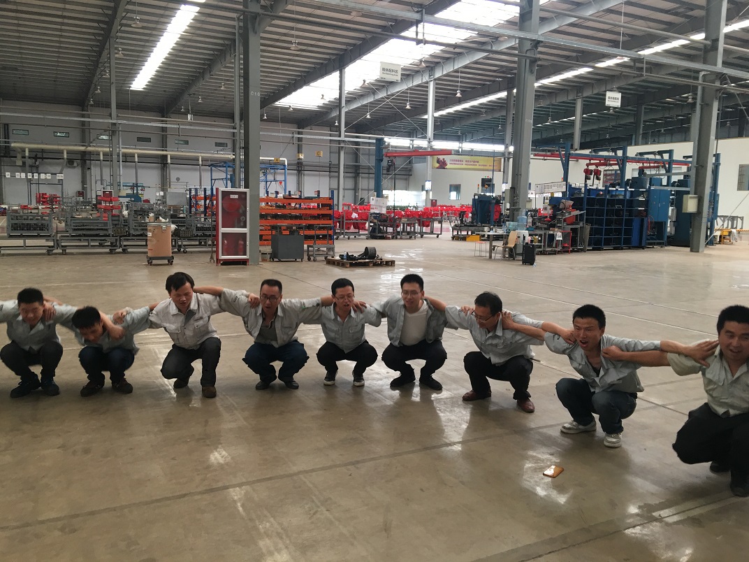 為了提高團隊協作能力,2019年6月6日亞澳農機全體員工在車間進行了團隊建設訓練活動。