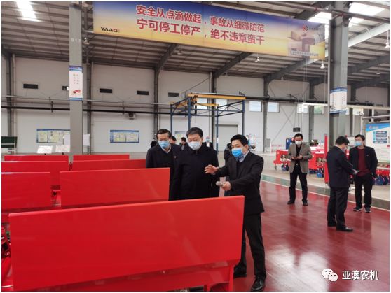 霍好勝一行在亞澳農機調研與公司總經理史炳哲進行深入交流,詳細了解疫情防控、復工進度和遇到的困難等問題,并深入生產區一線現場查看企業的生產狀況。
