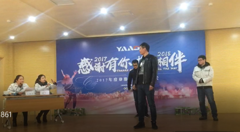接著使人捧腹大笑的話劇表演《羅密歐與朱麗葉》、優(yōu)美激昂的詩朗誦《十年獨(dú)白》、別具一格的《三句半》、令人陶醉的深情歌唱《男人花》、貼近現(xiàn)實(shí)生活又精彩的小品《應(yīng)聘》一一登上了舞臺。中間穿插的小游戲更是把年會推上了高潮。